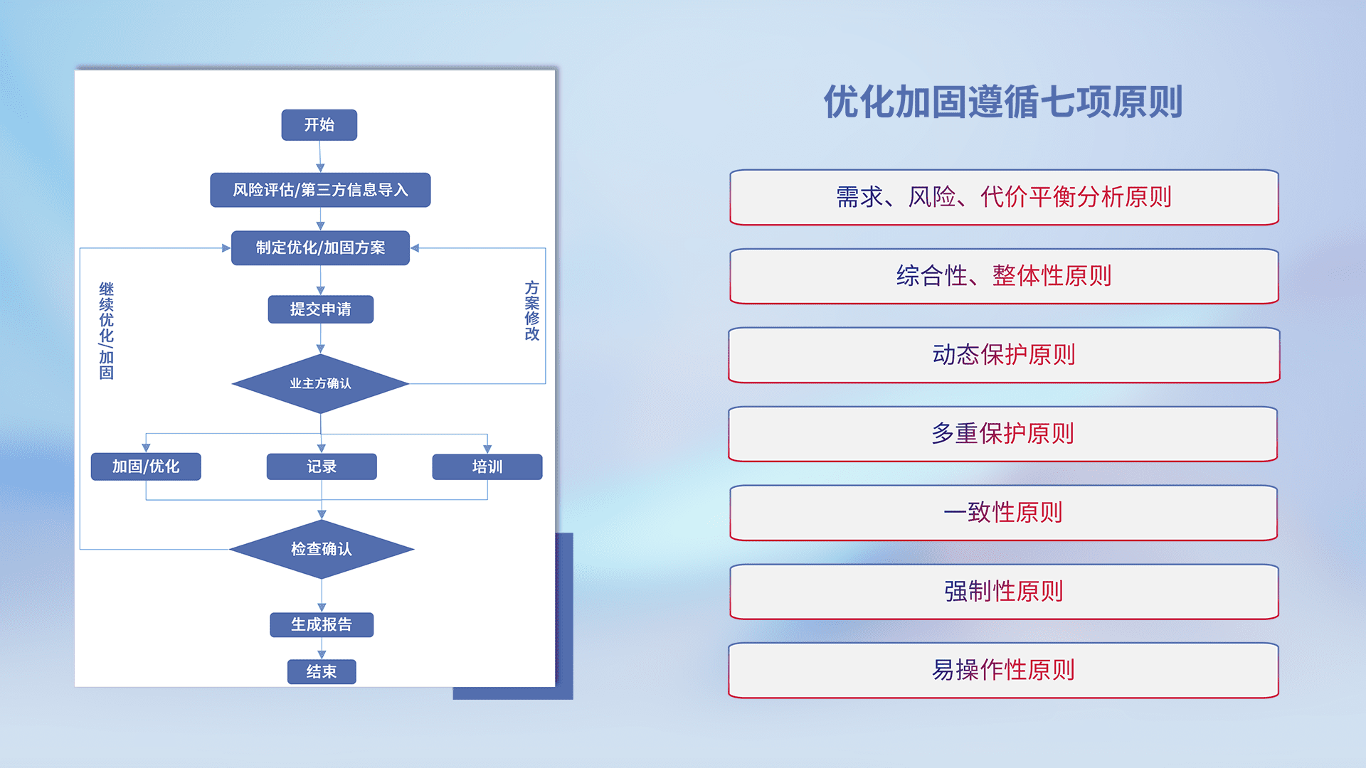 最大程度利用现有资产,,,对评估发现的问题进行封堵与整改,,,防止漏洞被利用,,,提升整体网络安全性,,,,为客户带来高标准的优化加固服务。。