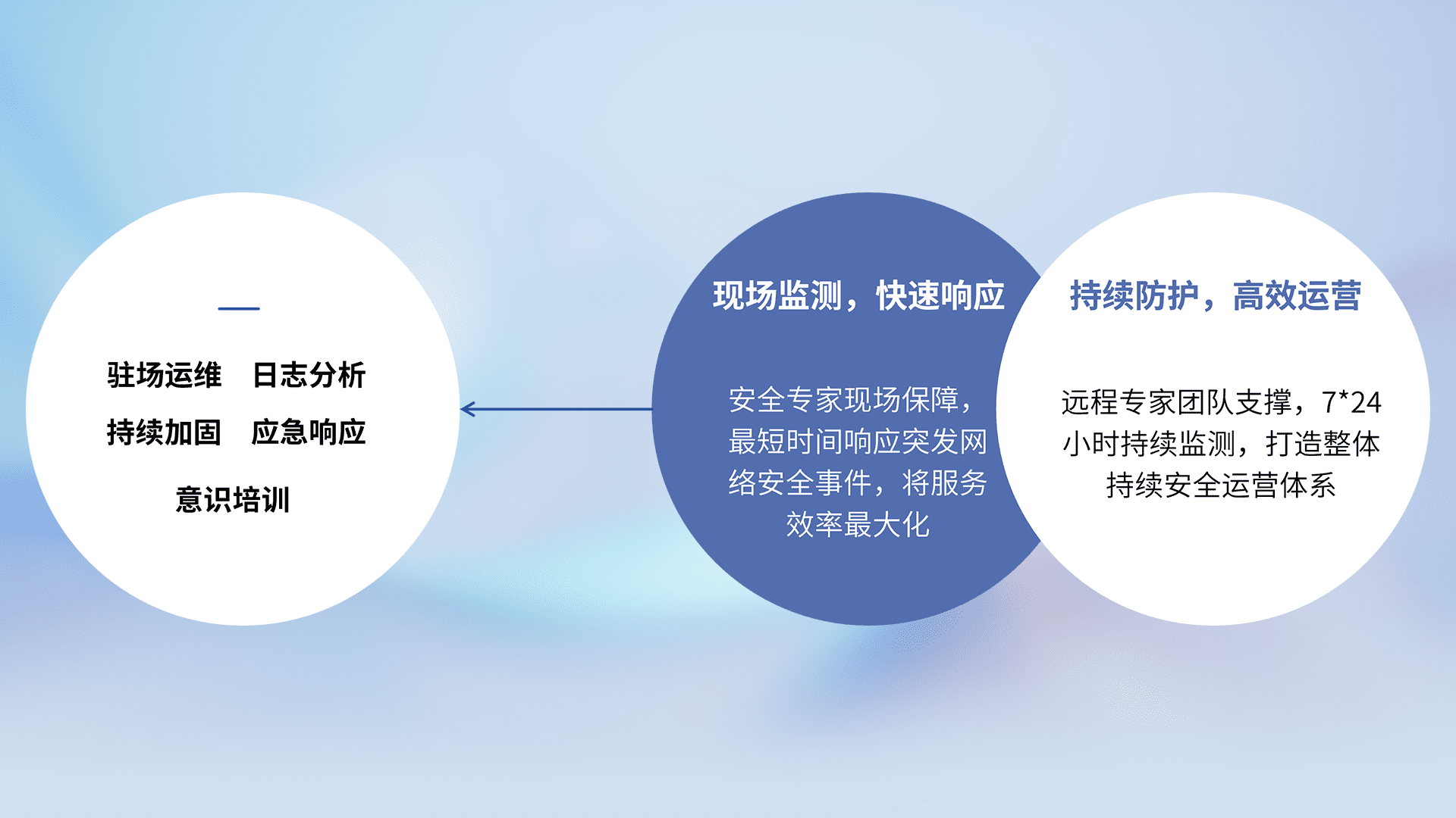 7X24小时持续监测安全事件,保持安全策略有效性,降低资产脆弱性风险,,,,精准拦截黑客攻击,,,减少被黑客利用的机会,,第一时间遏制,,降低损失。。。。